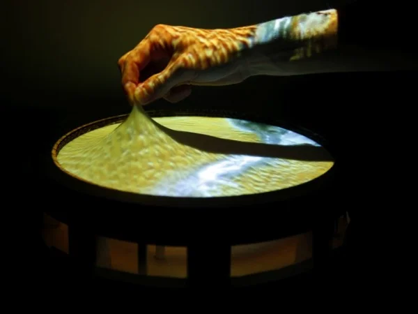The inspiration behind this has been to recreate the "fluidity and malleability" of water, while also allowing traditional gestures (along with some multitouch functionality) to make 3D geometric shapes.