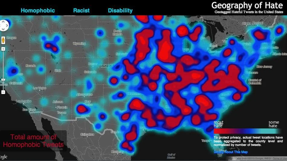 'Geography Of Hate' Uses Twitter Data To Map Most Racist And Homophobic Places In America