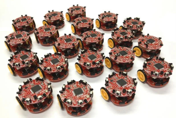 Created in partnership with Tsinhua University in China, these robots (4cm diameter) can move with fast motion (35cm/s) to autonomously simulate nature, taking inspiration from swarms: a hot topic of insight for robotics reserachers across the globe. The platform imitates swarm behaviours found in such creatures as insects, birds and fish, and the aim of creating this is simple: find technological solutions to the complex-yet-common tasks.